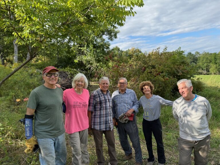 Stout Family Fields is one of our most visited preserves; if you haven’t been yet, spring is a great time to check it out. Over the past three years, TRLC volunteers spent more than 100 hours clearing invasives from around the wetland copse (The Island) in the southern field. In 2024, we planted native species there and in 2025, we hired a contractor to remove invasives from the banks of the brook between the two fields. Last year, we also planted sycamore seedlings from the Pinchot Sycamore on The Island.